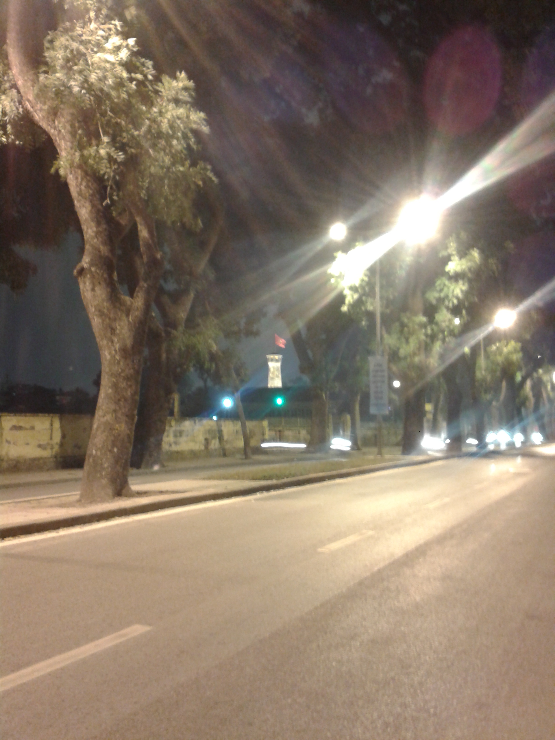 Định đi ăn kem nữa, cơ mà không biết hàng nào ngon, càng không biết đường. Thôi lại mần mò đi về. Thế nào lại thấy được chợ đêm: Chợ Đồng Xuân. Thế là bất chợt nhớ chợ hoa đêm Sài Gòn ấy. Đi đường Quán Thánh, thấy đường đẹp quá. Màu đèn đường vàng cam sậm lại, đường vắng tanh, mấy cái gốc cây già đứng im to béo. Gió lạnh, được cái ngắm đã mắt. Liếc qua bên kia đường lại thấy Hoàng Thành và Cột Cờ đẹp lạ. Đúng là một buổi tối sến súa.